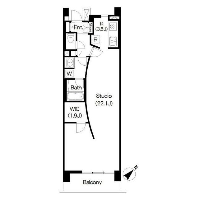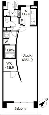 | 間取り | ワンルーム(K3.5・洋室22.1) | 主要採光面 | 南東 |